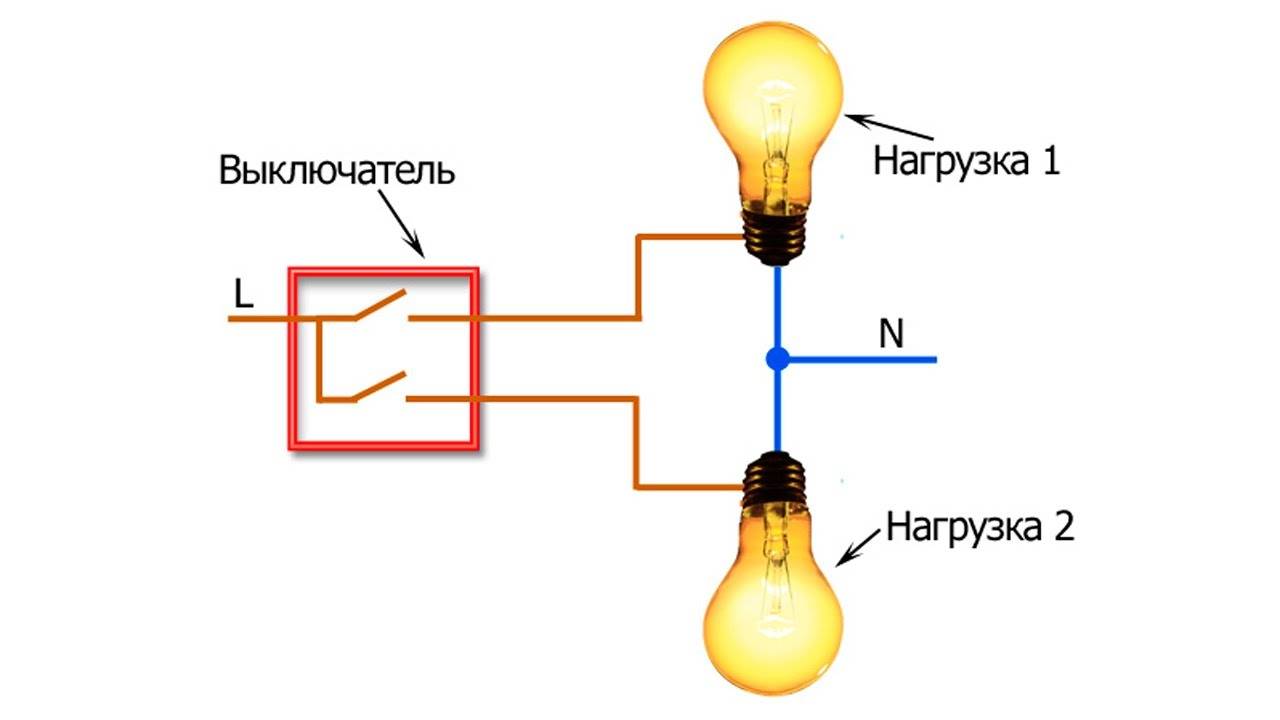 Схема подключения двухклавишного выключателя на две лампочки
