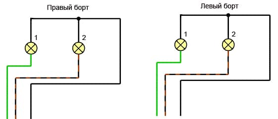 - габаритный свет, желтый (правый борт), черно-желтый;