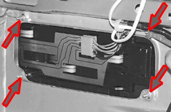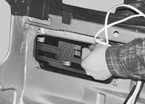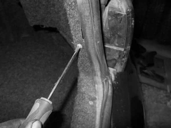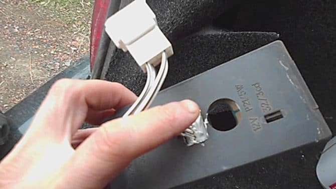 снимается минусовая клемма с аккумулятора, при необходимости вынимаются ранее описанные предохранительные детали; открывается багажный отсек, из которого следует достать все ненужные вещи (то, что может мешать осуществлению задуманного); посредством отвёртки нужно избавиться от винтов, а также убрать на время обивку багажника; снимается патрон лампочки, с помощью которой освещается в тёмное время суток номерной знак транспортного средства; откручиваются все винты, с помощью которых крепится корпус лампы, после чего он демонтируется