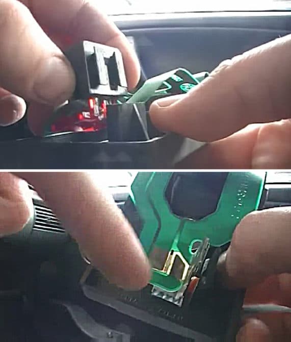 Отжимаем наружу фиксатор отверткой или просто руками (он помещен ближе к центральной осевой автомобиля) и снимаем плату вместе с лампами.