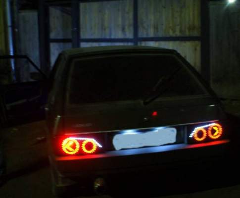Произвести тюнинг фар ВАЗ-2106 своими руками не так уж и сложно, следует взять в расчёт комплектацию задней оптики, состоящей из 4 лампочек (если рассматривать от борта к номерному знаку). Первая лампочка поворотника расположена ближе всех к борту авто и скрыта под оранжевым стеклом. Вторая — заднего хода, находится в центральной части конструкции под белым стеклом. Третья — габаритного освещения, её можно определить по местоположению под вышеописанным элементом освещения, за красным стеклом. Последняя осветительная деталь задней оптики — стоп-сигналы, которые располагаются рядом с номерным знаком под красным стеклом.