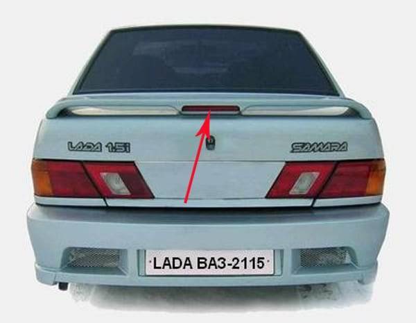 На ВАЗ 2115 есть еще один задний фонарь – повторитель стоп-сигнала. Он расположен на спойлере, а в качестве источника света в нем включены светодиоды.