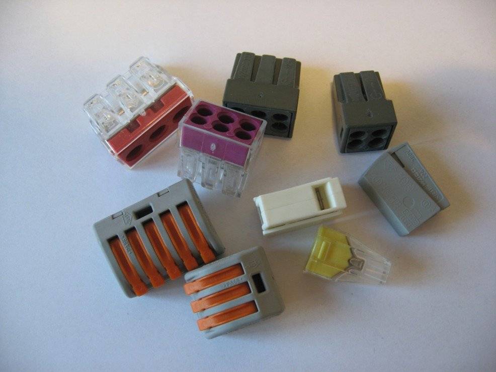 - использование пружинных зажимов — wago, СИЗ — быстро устанавливаются, при соблюдении условий эксплуатации обеспечивают хороший контакт;