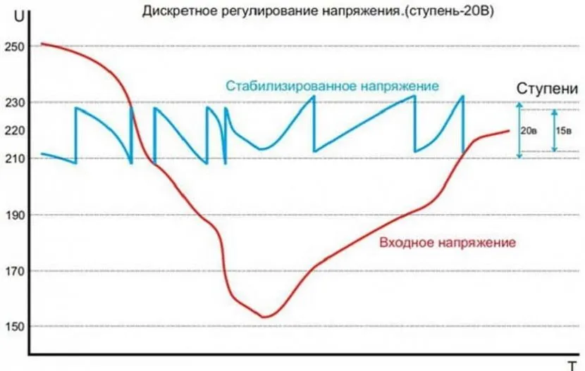Наглядный пример графика значения напряжения при работе стабилизатораИсточник Toolstver.ru