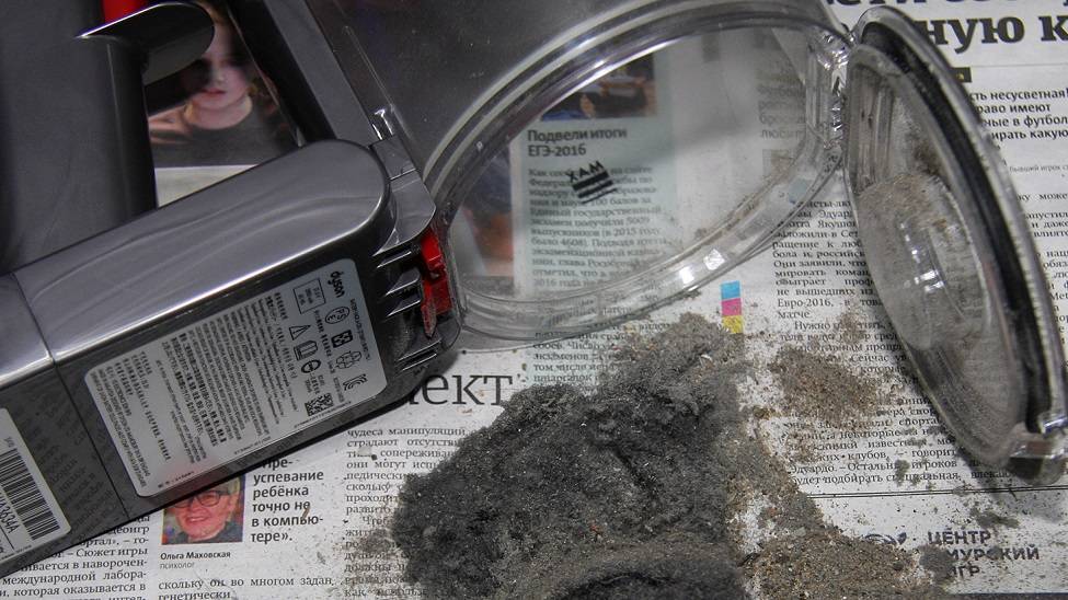 Корпус абсолютно герметичен, воздух не пропускает, поэтому и на малых оборотах убирает хорошо, мотору также помогает вращающаяся щетка. Аппарат собирает все, до чего может дотянуться — пыль, шерсть, мелкие камешки с ковра в прихожей. Бетонную пыль тоже возьмет, но так делать нельзя — абразив все расцарапает.