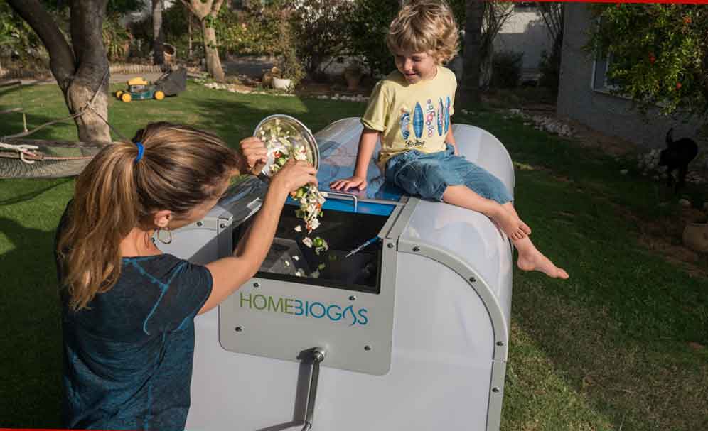 Разработанная израильской компанией HomeBioGas биогазовая установка по выработке газа в домашних условиях, при своих скромных габаритах (123 х 165 х 100 см) и массой не более 40 кг может обеспечить работу одной плиточной горелки на максимальном огне в течение часа.
