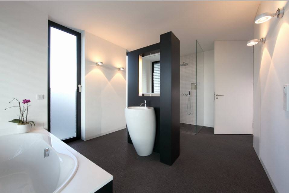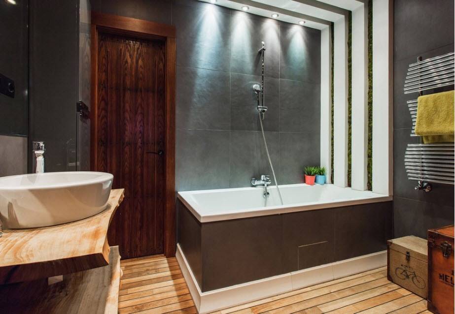 Качественное освещение необходимо для различных гигиенических и косметических процедур. Если для оформления ванной использованы темные цвета, то свет должен быть более интенсивным.