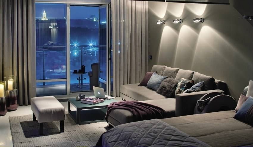 - настенные светильники позволяют поделить помещение на функциональные зоны, поэтому даже в условиях ограниченного пространства подчеркивается красота и уют;