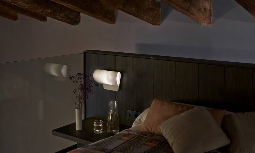 Высота бра над кроватью подбирается так, чтобы можно было включать и выключать, протянув руку. Некоторые выводят выключатель на стену около спинки кровати, если бра располагается слишком высоко. Конструкция может быть любой, главное, чтобы она подходила под обстановку.