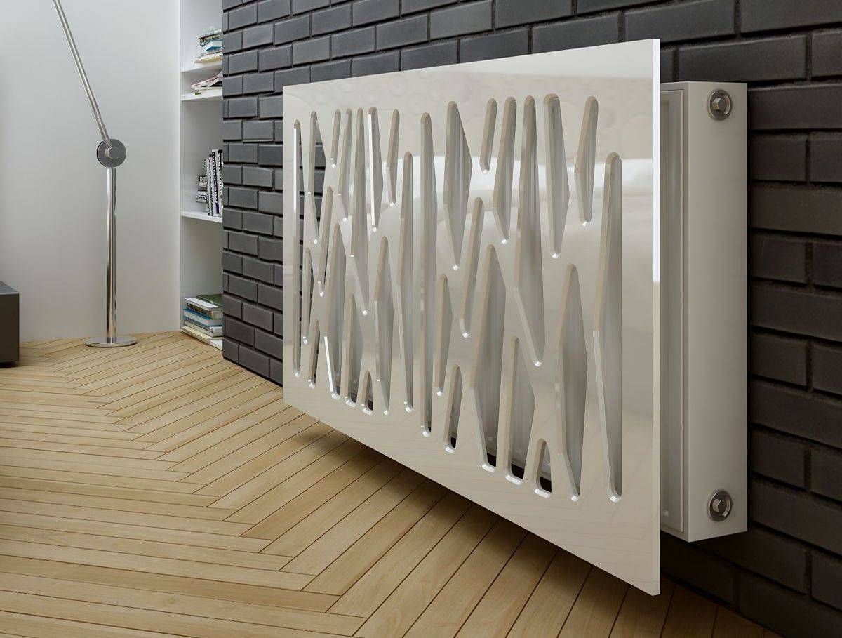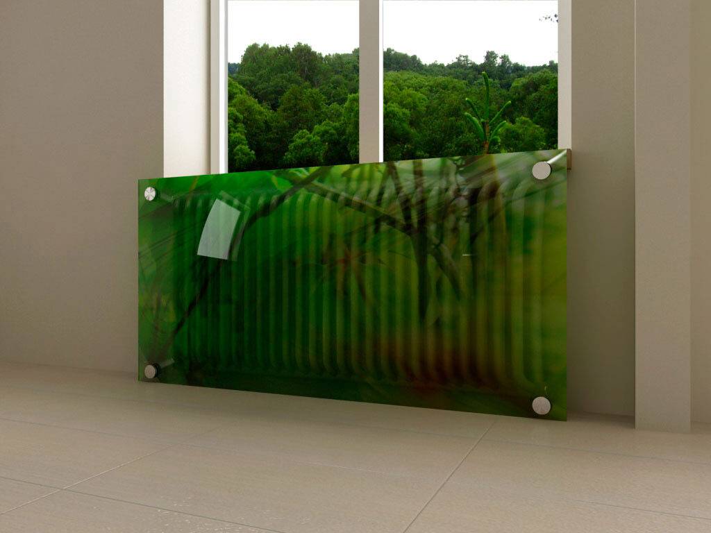 Красиво можно вписать в любой интерьер стеклянный экран. Он представляет собой толстую стеклянную пластину, которая крепится к стене при помощи стальных держателей. Экран закрывает лишь переднюю часть радиатора, оставляя верх, низ и боковины открытыми для свободного прохождения тёплого воздуха внутрь комнаты. Поверхность стекла можно сделать зеркальной, часто на неё наносят фотопечать.
