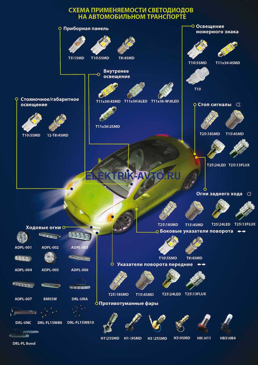 В Соединенных Штатах «законники» подобными вопросами, кстати, вовсе не заморачиваются и ездить разрешают с любыми примочками. В любом случае даже для установки оригинальной лампочки приходится ориентироваться в основных видах и модификациях автоламп, так как способы установки и крепления, а также источники питания для автосвета не унифицированы.