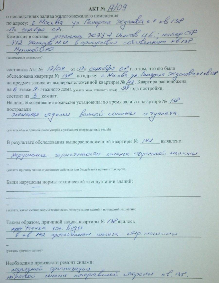 Акт о заливе квартиры