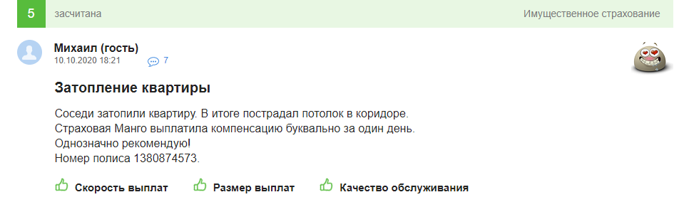 Отзыв клиента «Манго» на ресурсе АСН (Агентство страховых новостей)