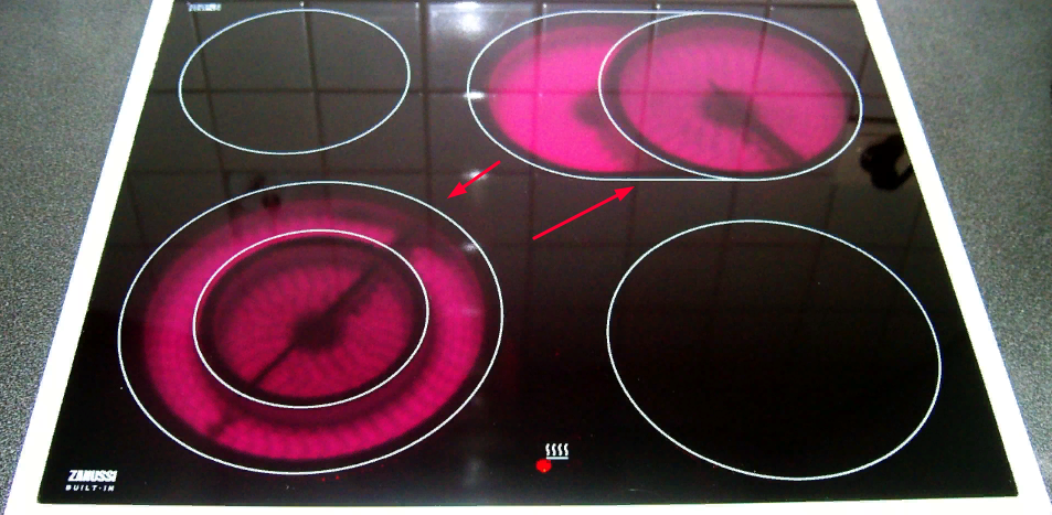 Электроплита с индукционными конфорками нагревает только дно посуды, когда как стеклокерамика нагревает поверхность полностью.