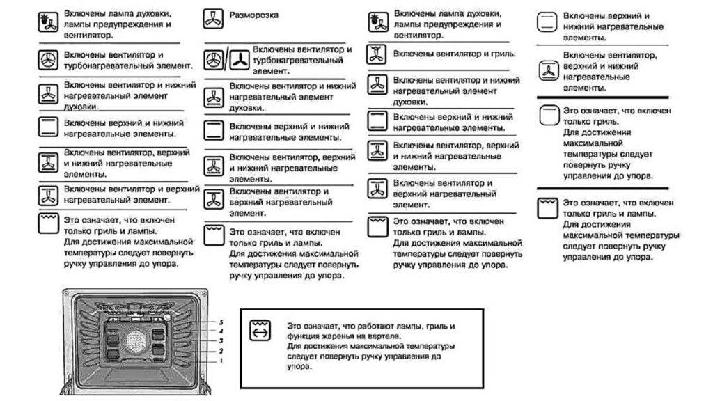 Многие из перечисленных ниже режимов есть не во всех моделях духовок, поэтому при выборе духовки нужно внимательно изучить инструкцию.Использование режима двойной конвекции позволяет быстро разогреть духовку, создать условия для равномерного приготовления продуктов во всем объеме
