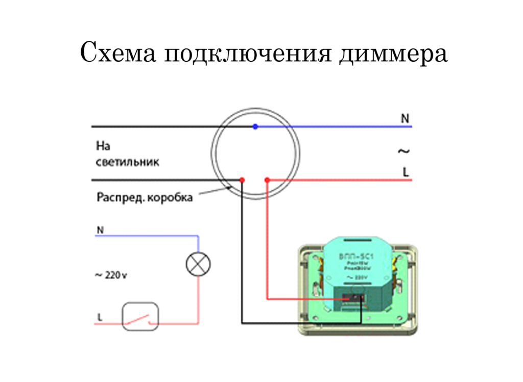 Существует несколько схем подключения для димминирования освещения. Каждая будет описана с принципом подключения и возможного назначения.