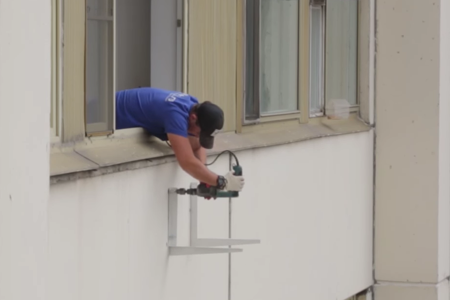 - монтажные работы проводятся на лицевой части многоэтажки;