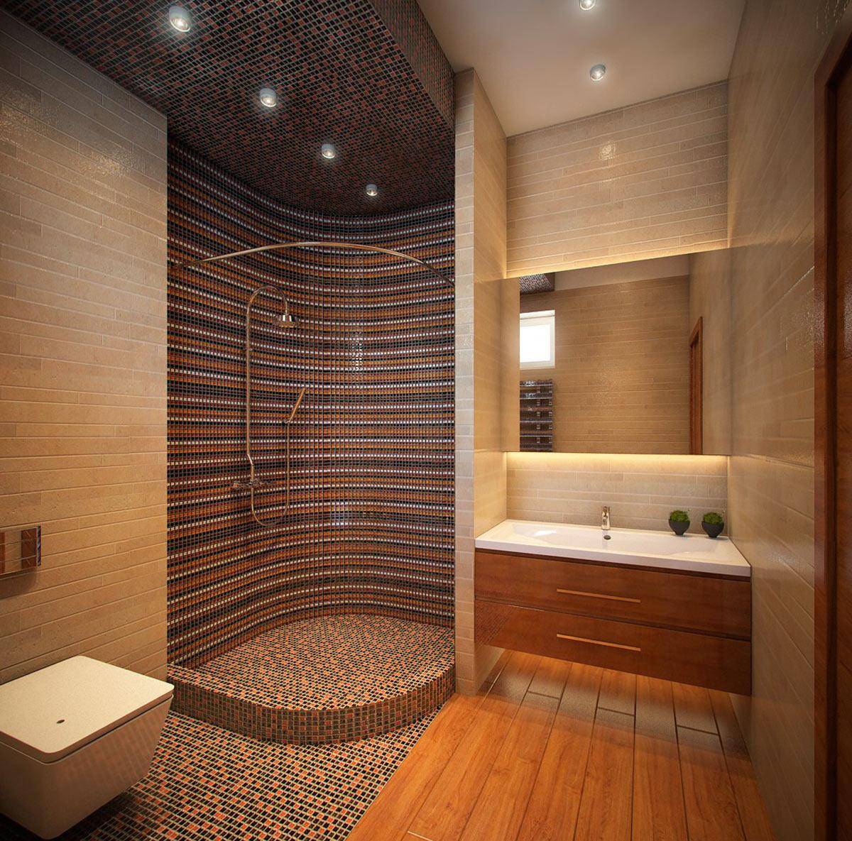 Оригинальное решение воспользоваться прямоугольной или ассиметричной конфигурацией. Площадь такая же, а ощущения более комфортные. Выбирая наиболее оптимальный вариант, стоит внимательно рассмотреть каждое заинтересовавшее фото душевой кабины из плитки, с тем, чтобы выбрать удачное конкретное исполнение.