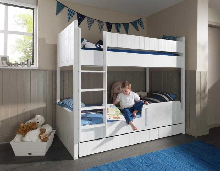Двухъярусная кровать с выдвижным третьим спальным местом поможет существенно сэкономить пространство