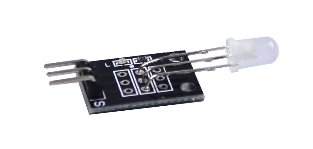 Еще больше тонов, и в том числе белый свет, получают при собрке схемы с тремя разноцветным светодиодами. Это известная RGB-схема с общим анодом. Внешне трехцветная лампа сразу узнается по наличию четырех выводов, к тому же на ней обязательно проставляется соответствующая маркировка.
