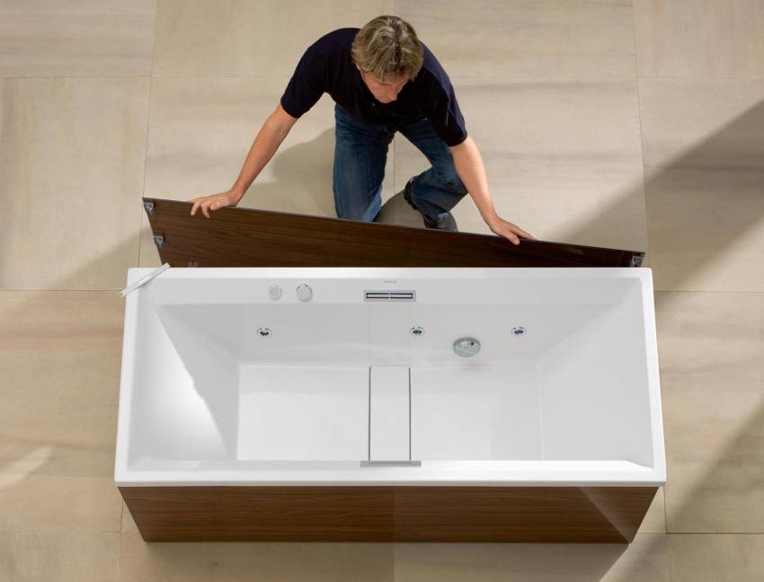 Если сантехника для купания сделана из акрила или пластика, то в большинстве случаев снаружи она имеет вполне приличный вид. А чугунные или стальные изделия взор наоборот не радуют. Их обязательно необходимо декорировать снаружи, иначе санузел будет выглядеть не слишком опрятно.