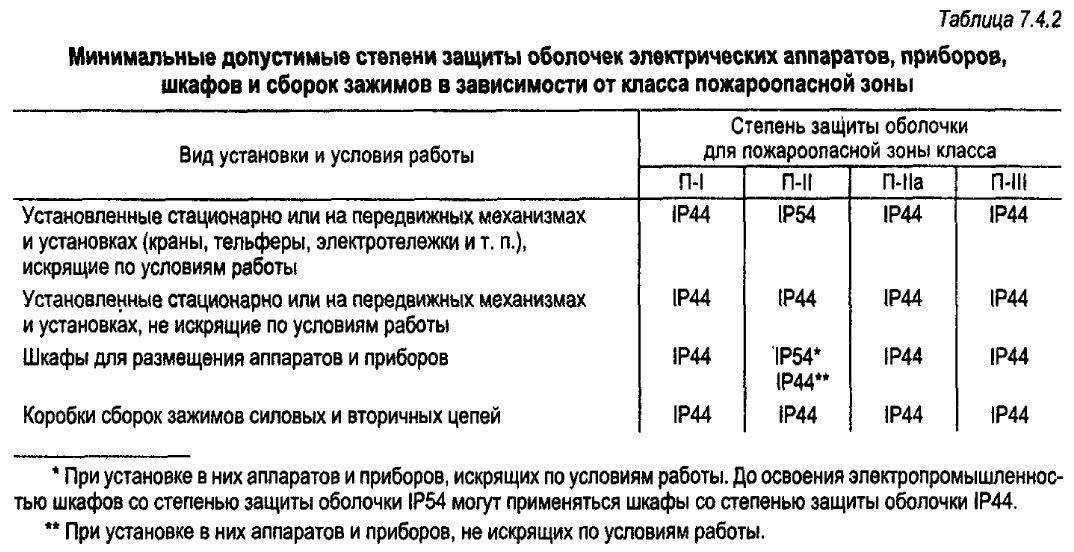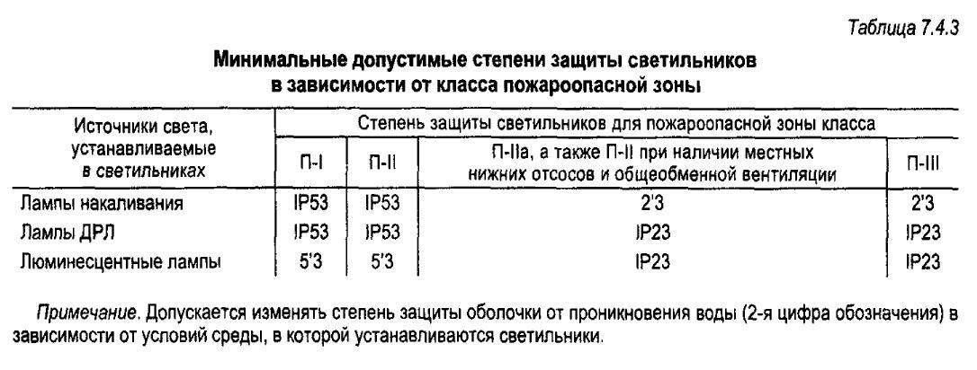 Требования к лампам в пожароопасных зонах и минимальная степень их защиты в следующих пунктах ПУЭ: