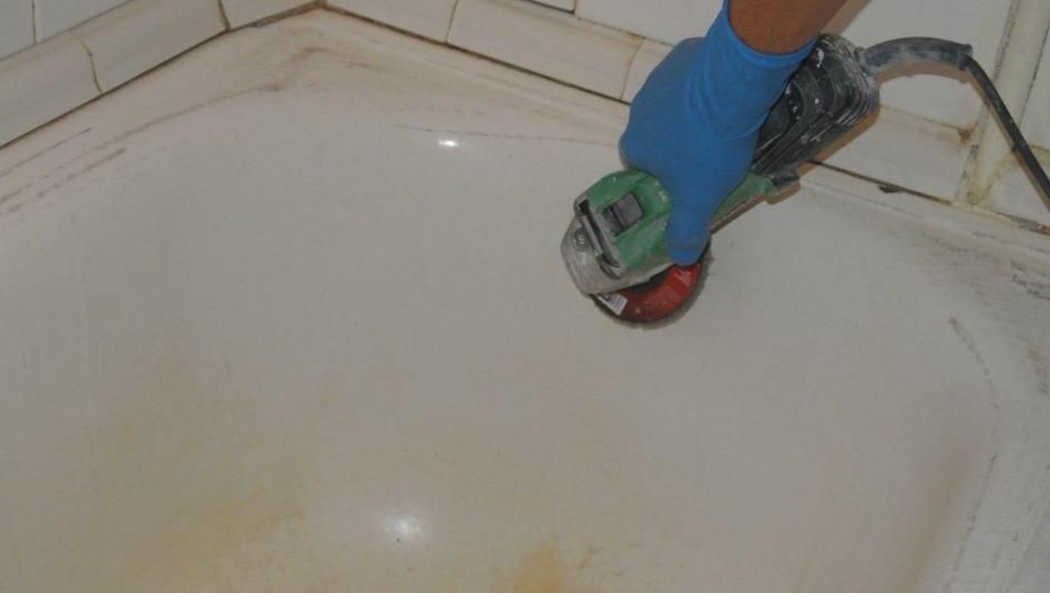Шаг 6 | После шлифования очищаем ванну от образовавшихся частиц. Можно использовать пылесос. |