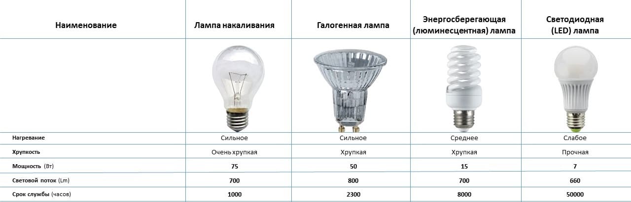 | Накаливания | Энергосберегающие | Светодиодные | |