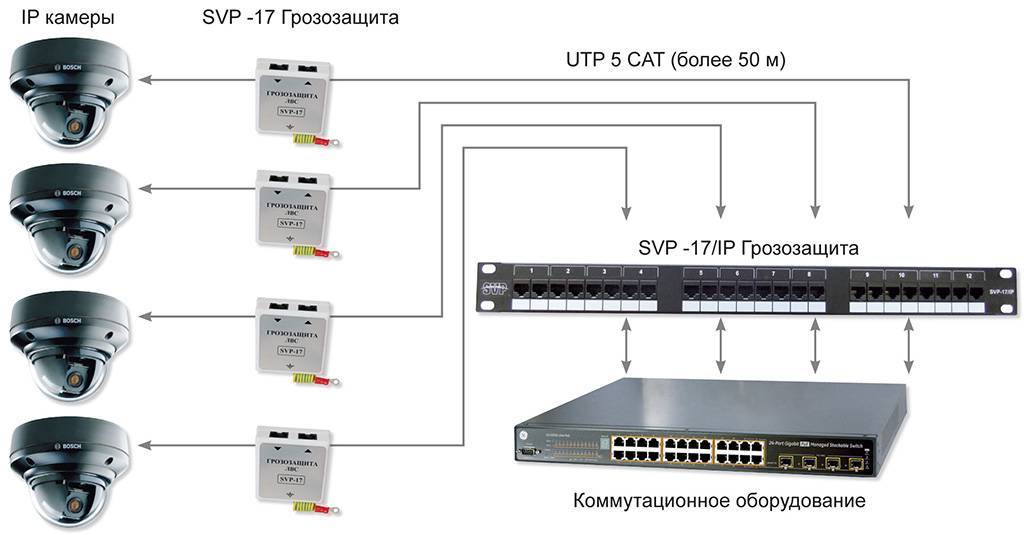 Схема подключения ip-камеры через svp17 грозозащита