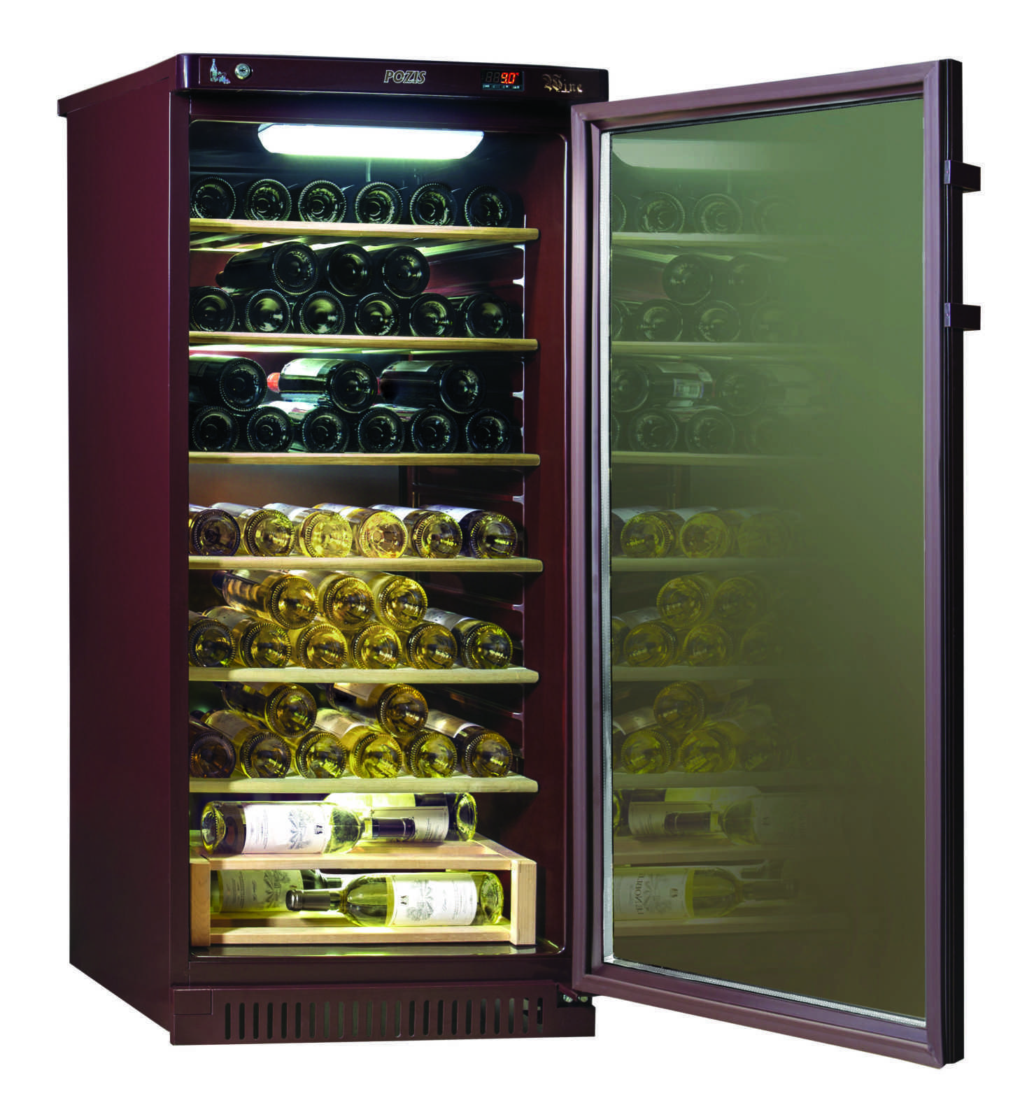 Еще один винный шкаф от Позис. Он практически ничем не отличается от предыдущего “собрата”. Разве что объемом. В этой модели предусмотрены 5 полок из прочного дерева и поставка, которую можно использовать для переноски бутылок. Что примечательно, абсолютно каждая полочка выдвигается, благодаря чему доставать или демонстрировать вина гораздо проще. Так же как и предыдущая, эта модель оснащена электронным блоком управления, расположенным на внешней панели холодильника, автоматическим регулятором температуры и световыми индикаторами. В этом случае дверца так же затонирована для предотвращения попадания прямых солнечных лучей на продукцию.