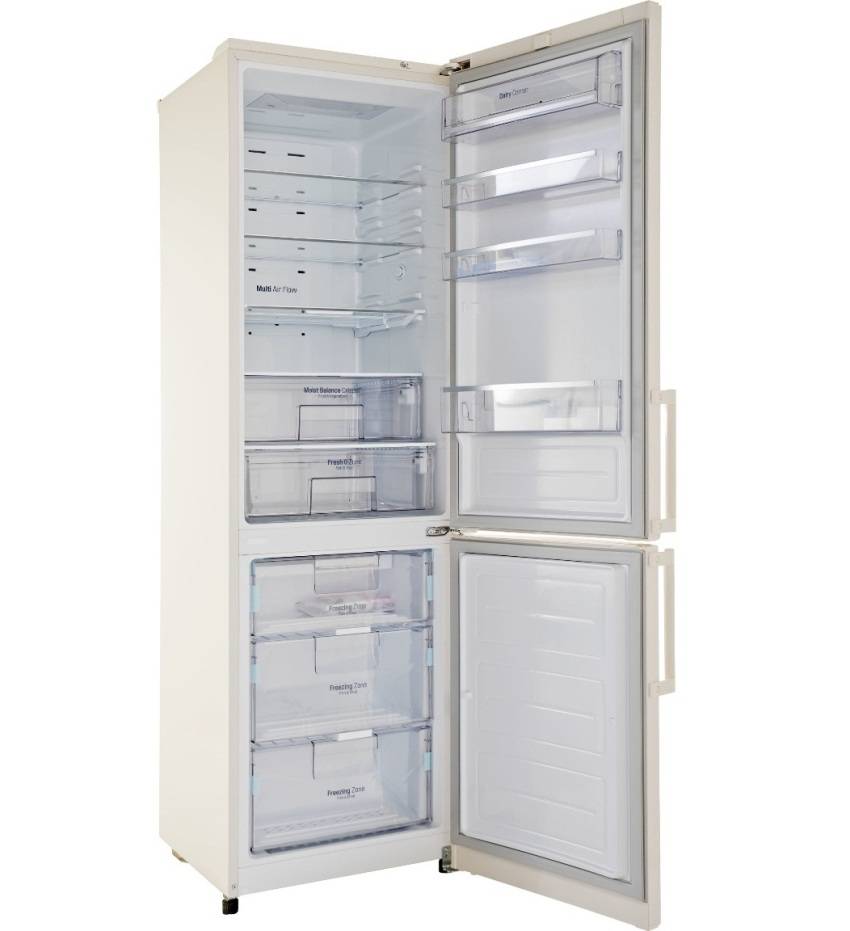 Система разморозки в данном холодильнике производится по технологии No Frost. Управление устройством, которое относится к этой серии, производится с помощью электроники. Покупка двухдверного холодильника LG этой модели – отличное решение не только с точки зрения функциональности, но и относительно дизайна. Габариты агрегата полностью подходят для интеграции в кухонную мебель.
