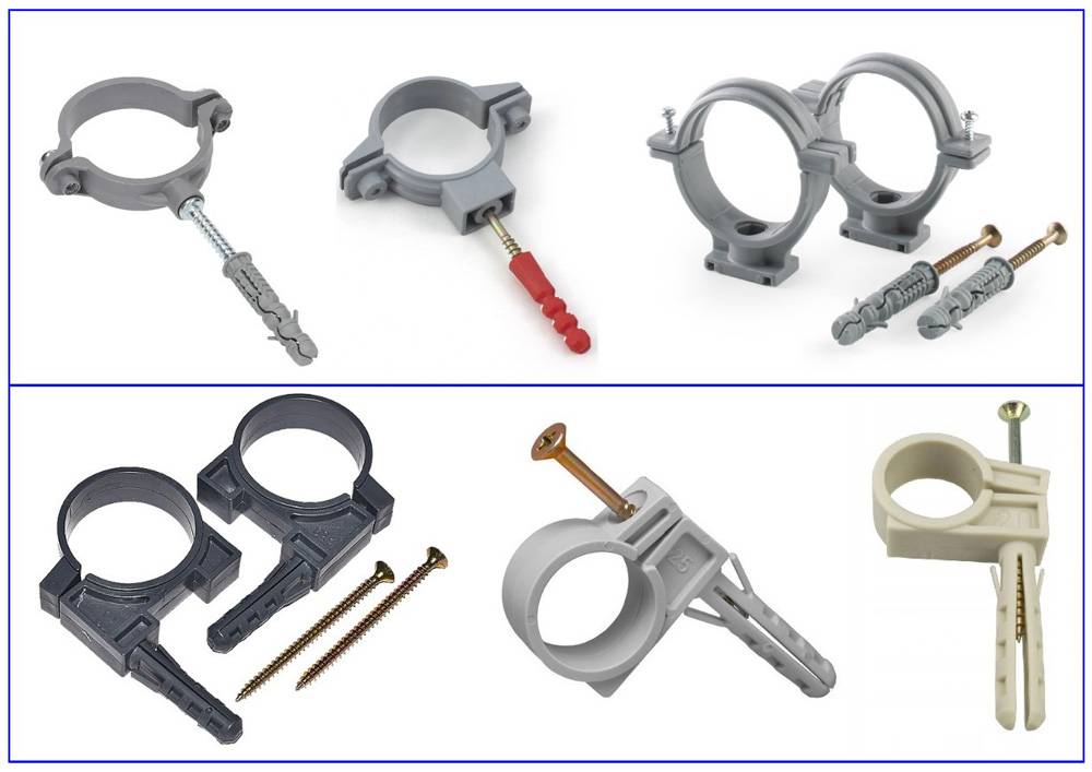 Пластиковые варианты отличаются повышенной эластичностью, высокой устойчивостью к вибрациям и способностью создания подвижной фиксации. Модели могут применяться для крепежа трубопровода диаметром не более 10 см.