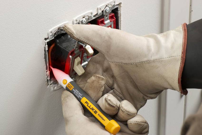 Как проверить повреждение проводов, скрытых в стене? Для этого используется индикаторная электронная отвертка. Включив ее и установив переключатель на бесконтактный режим работы, нужно медленно вести жалом тестерной отвертки по стене вдоль маршрута, по которому проходят провода от распределительной коробки к выключателю или розетке. В месте, где кабель поврежден, индикаторная лампочка потухнет.