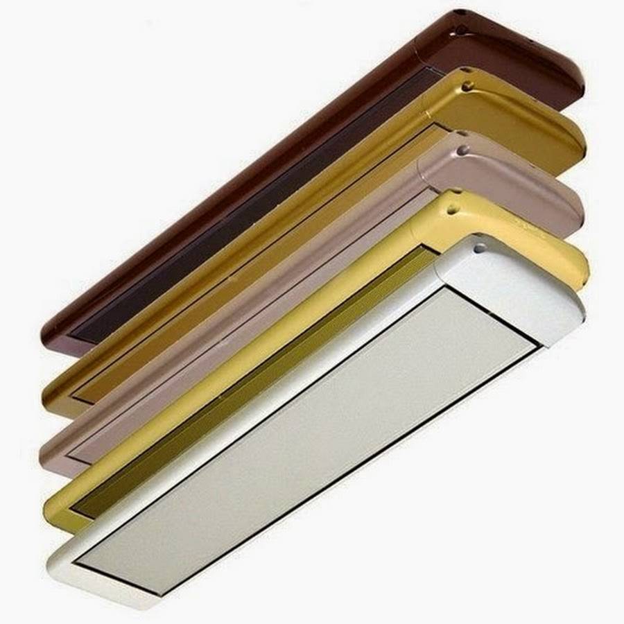 - Механизмы различают по типу нагревательного элемента. Галогенные элементы являются самыми простыми и вредными. Карбоновые нагреватели служат дольше, излучений от них меньше. Эффективными считаются керамические и трубчатые нагревательные элементы – они надежны, служат длительное время, безопасны.