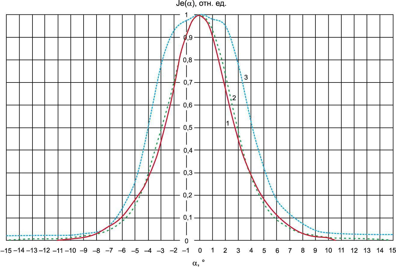 Диаграммы пространственного распределения мощности излучения ИК-диодов приведены на рис. 3. Видно, что угол излучения ИК-диодов типа У-176 составляет 2 × Θ0,5 = 5,5°, а диодов типа У-190Б-1 — 2 × Θ0,5 = 8°.