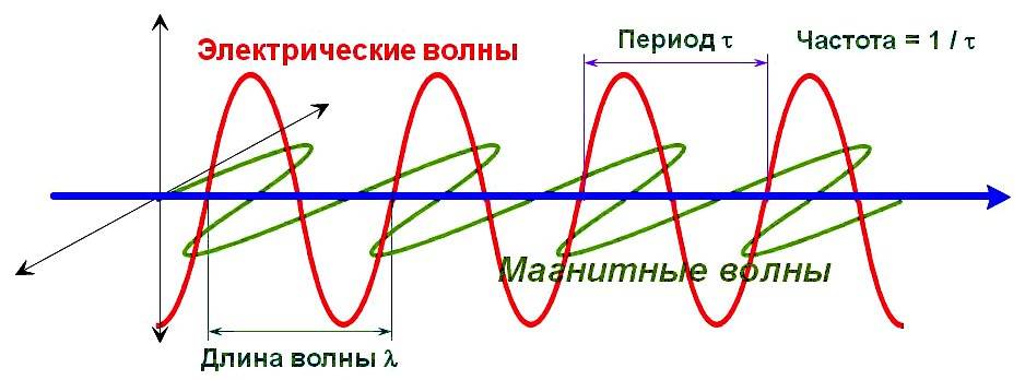 Длинная волна соответствует низкой частоте, а короткая – высокой. Длина измеряется в метрах. Количество волн, излучаемых в каждую секунду, называется частотой и обратно пропорционально периоду.