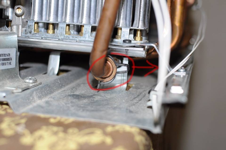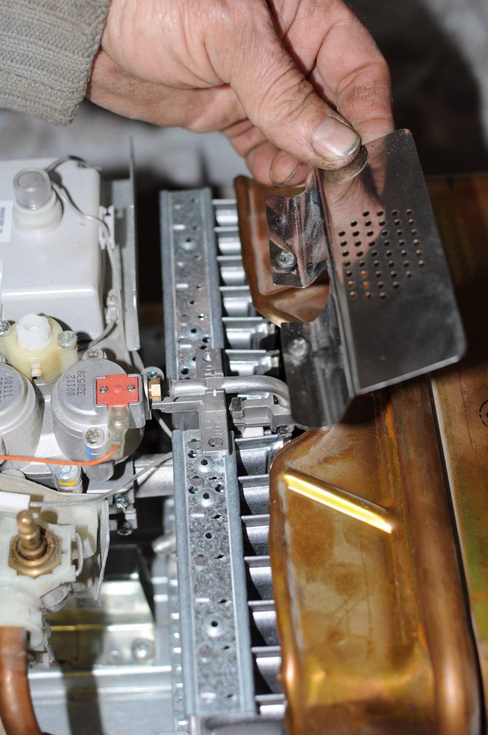 Снимать запальную трубку следует достаточно осторожно, не продавливая рубашку теплообменника