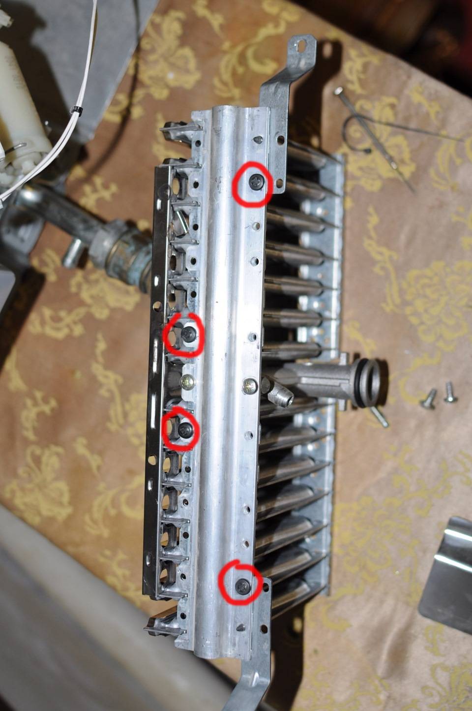 Продукты выгорания топлива с течением времени покрывают нижнюю поверхность радиаторных пластин. Очистку от копоти проводят при площади загрязнений более 30%, в большинстве случаев ее совмещают с удалением накипи.