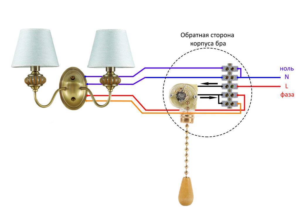 Веревочные и цепочные модели — как подключить бра с выключателем-шнурком?