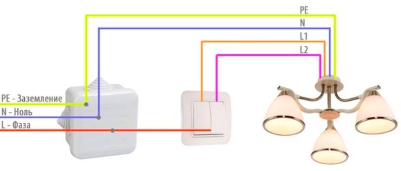 Подключение 3-х или 4-х проводной люстры к двойному выключателю