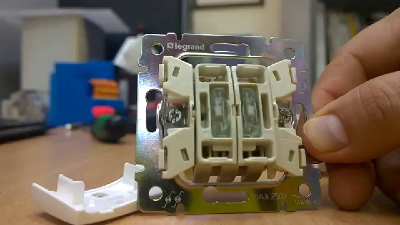 По виду это устройство представляет собой резистор с неоновой лампой. Схема устройства прибора Представленный прибор разнится с обычным выключателем только наличием специального подсвечивающего индикатора, который может выступать в роли лампы неонового типа или же светодиода, содержащего ограниченный резистор. Чтобы правильно вмонтировать новый выключатель, нужно соблюдать такую же схему, как и при снятии, только в обратном порядке, то есть: Вставить в гнездо внутреннюю часть, предварительно подсоединив к ней провода.