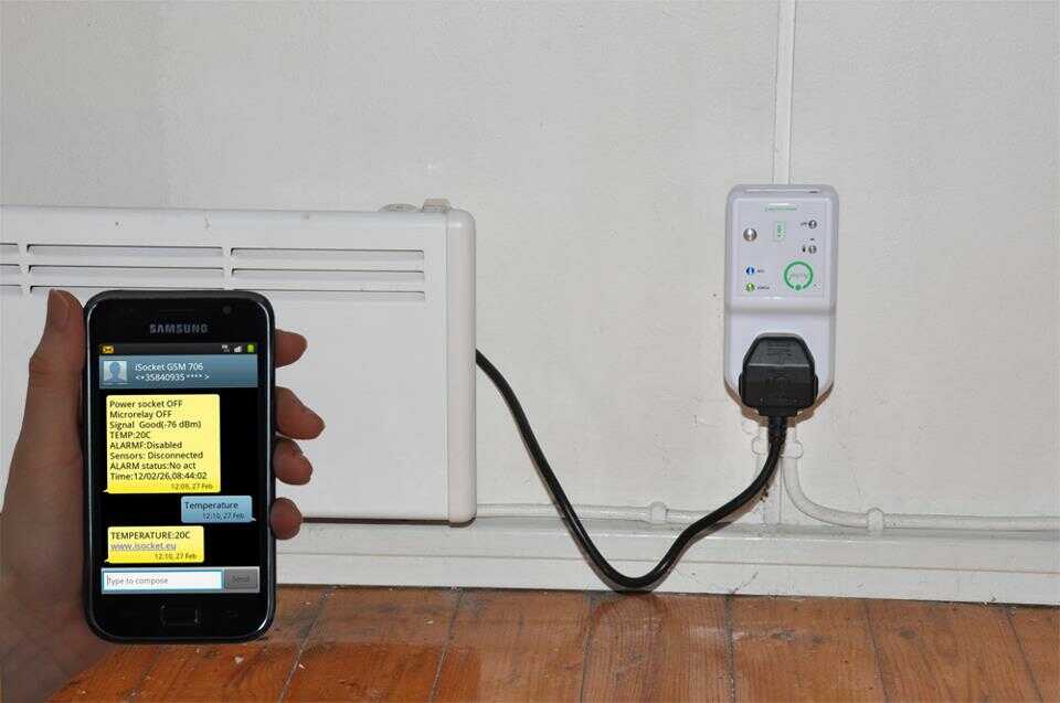 - У GSM розетка, принимает команды благодаря Sms и звонков с телефона.