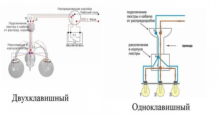 Здесь особенность заключается не только в том, чтобы все соединить в распределительной коробке, нужно еще правильно подключить лампочки.