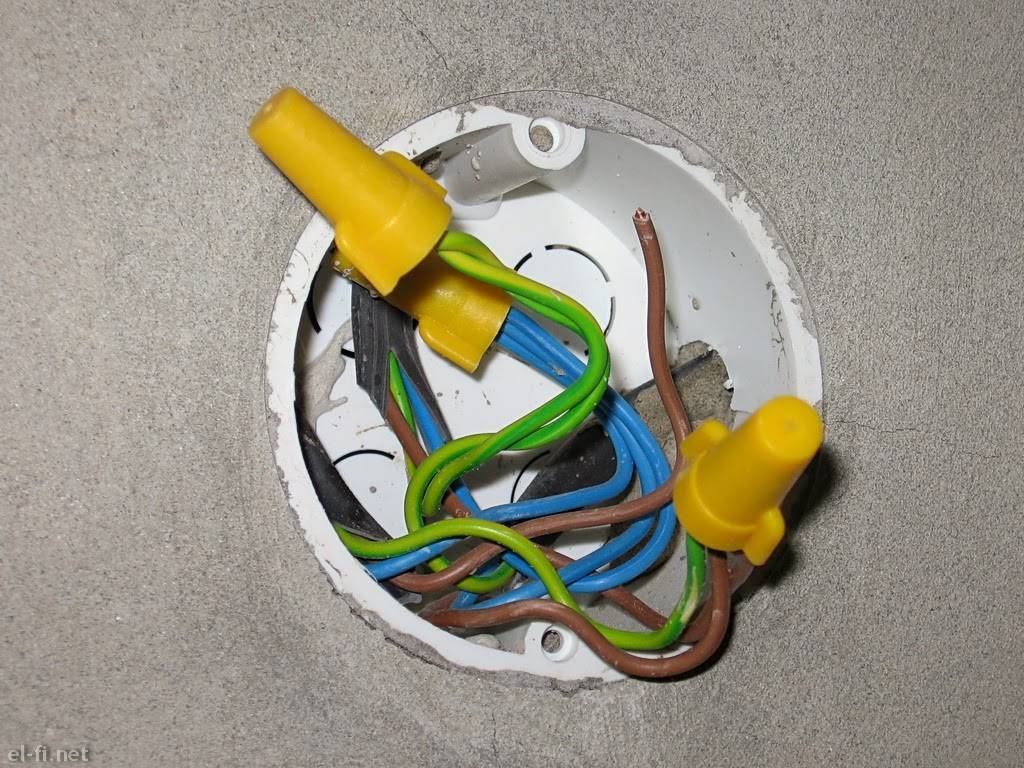 - подсоединение к осветительным приборам трехжильного кабеля, учитывая «ноль», «фазу» и «заземление».