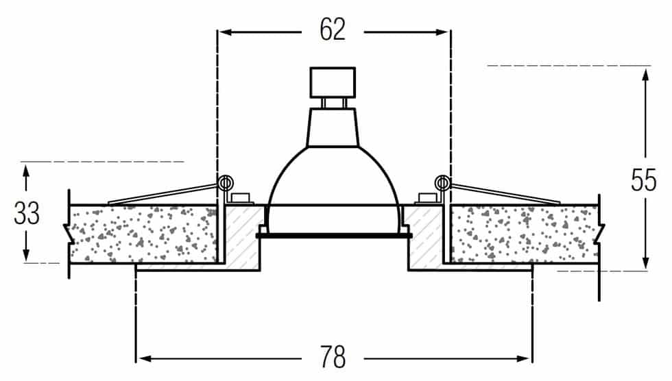 - пружины пальцами прижимаются к корпусу светильника и вводятся внутрь кольца держателя, после чего легким движением корпус осветительного прибора ставится на место;