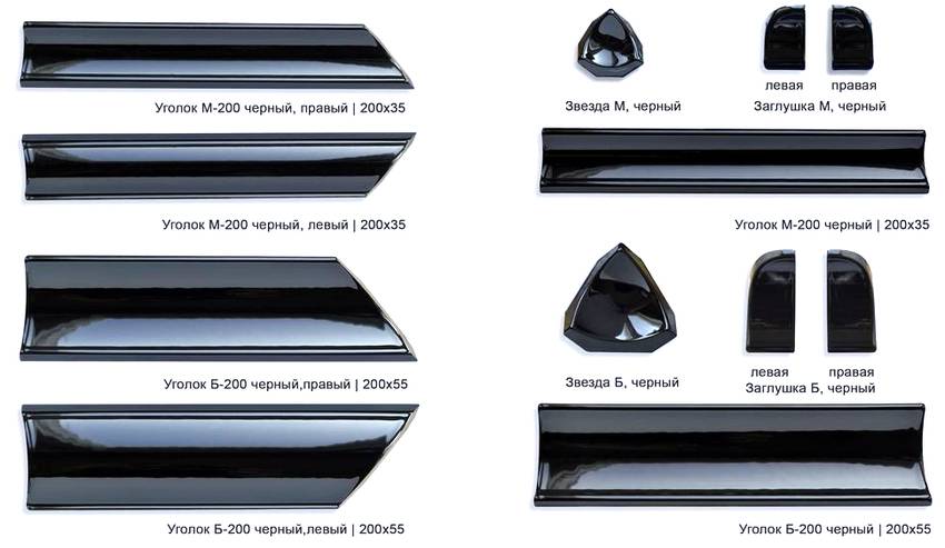 Все виды уголков (внутренние, наружные, разборные) выпускаются как с использованием самоклеящейся пленки, так и без нее. Геометрические размеры могут различаться и находятся в пределах: