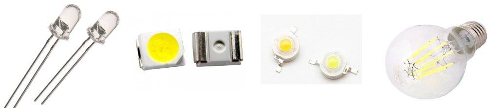 Уже из названия понятно, что главным рабочим элементом устройства светодиодных ламп на 220 В является светодиод. Именно его классификация в большей мере является решающей в определении видов лампочек.