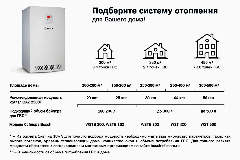 Расчет мощности котла по площади дома