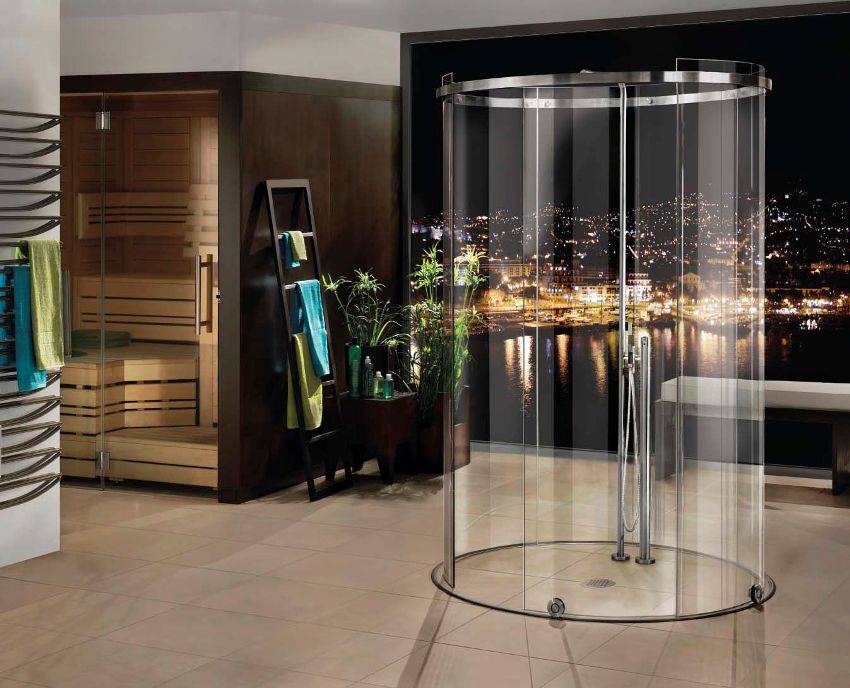 Душевая кабина округлой формы в основании имеет одно явное преимущество – экономится много места в ванной комнате, которая чаще всего тесновата