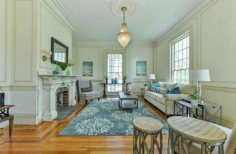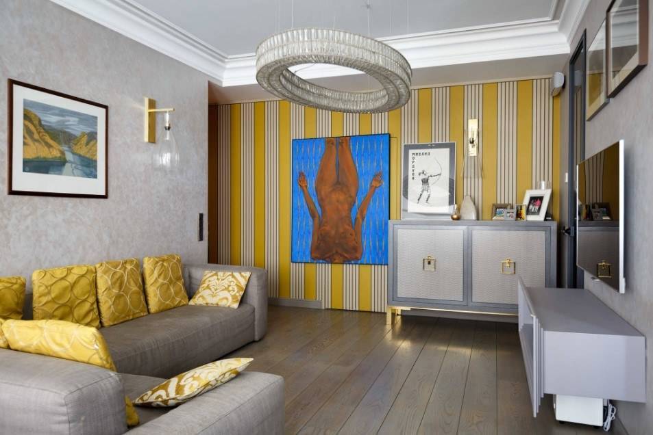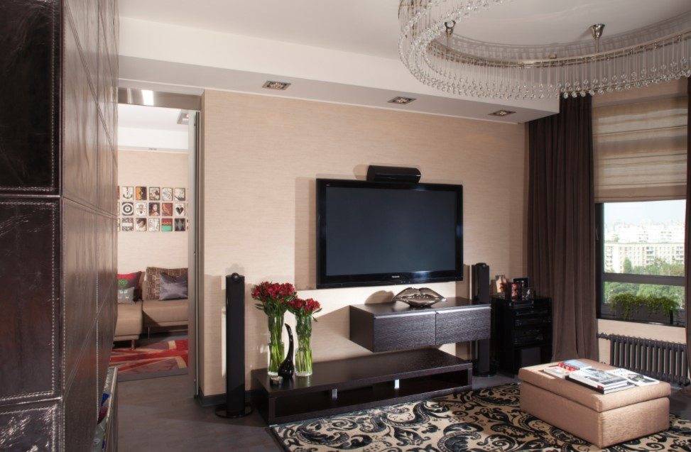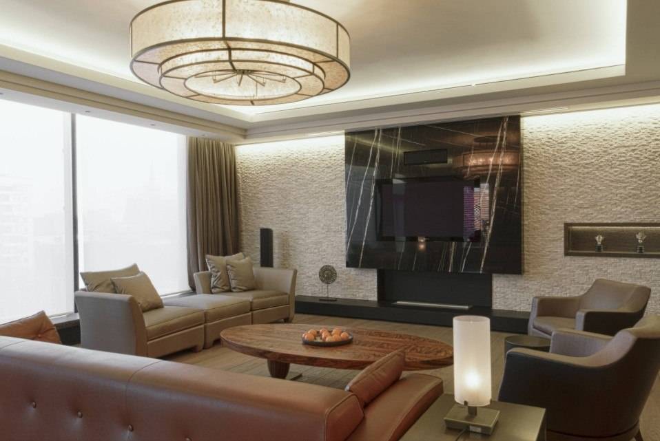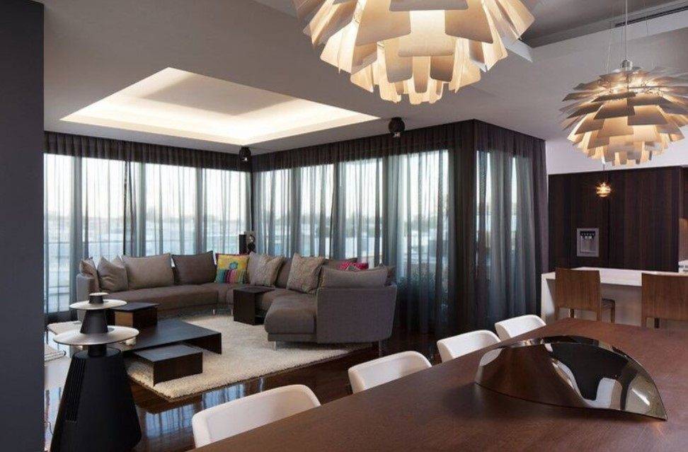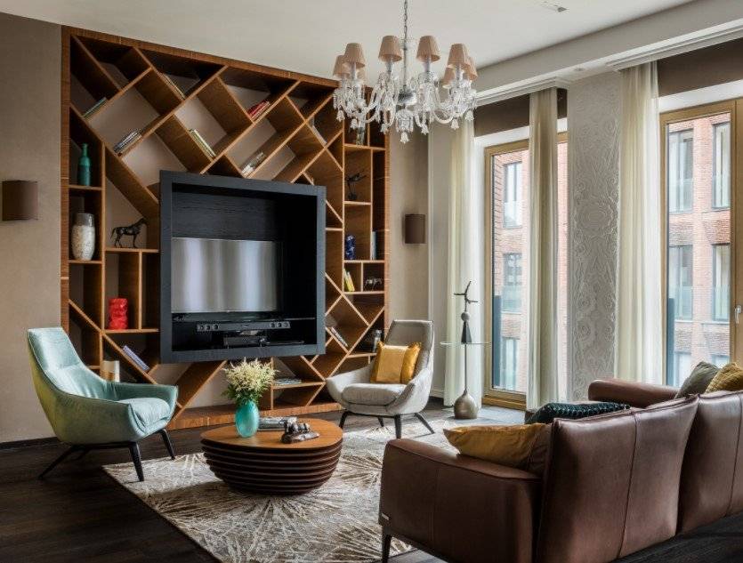 Удачным считается выбор, когда люстра не нарушает гармонию интерьера гостиной и идеально к нему подходит.